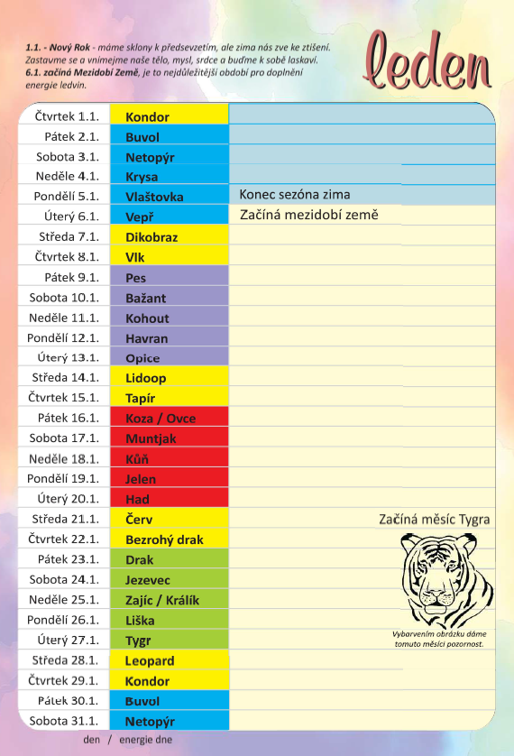 Kalendář energii leden/ únor 2026
