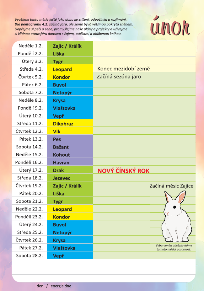 Pro mě je to každoročně období od 4. února do 5.4, kdy se energie roku přirozeně mění a otevírá se nový cyklus jara, který podporuje mé ohnivé fyzické síly. Více v analýza osobnosti Analýza osobnosti